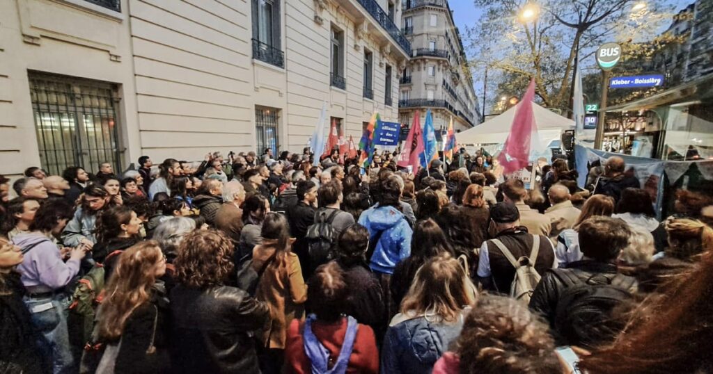 Más de 500 personas se reunieron a las 19 horas en cercanías de la embajada argentina en París para hacer memoria y repudiar los crímenes de la última dictadura. El director de la Casa Argentina nombrado por Milei, Santiago Muzio, retiró una placa que se encontraba en el vestíbulo de la casa colocada en 2022 para rendir homenaje a los desaparecidos.