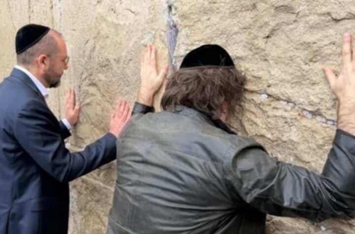 El presidente Javier Milei llegó este domingo a Israel y se dirigió al Muro...